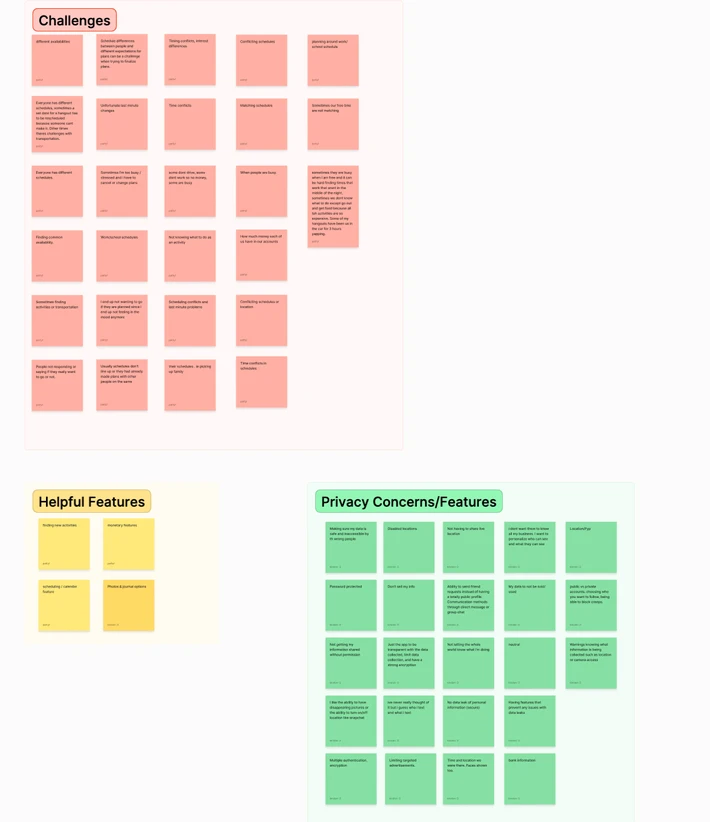 ๐ฅ Research Methods & Insights - Conducted a Google Form survey (45+ respondents, ages 18โ25) - Questions covered: social planning habits, preferences, frustrations, tech usage, spontaneity, and privacy concerns Key insights: 1. Most students plan via group chats or DMs, but find it chaotic 2. Common blockers: scheduling conflicts, cost, indecision 3. Users wanted privacy control and lightweight notifications 4. Positive response to AI helping suggest activities or sync times Google Form : https://forms.gle/H7wvU65kczRXGZpF6